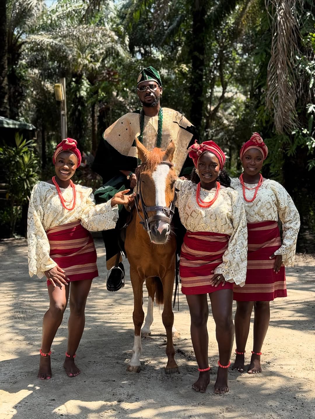 Then there’s the horse. A full horse. Because apparently, the only thing that could elevate a look this regal was an actual steed. The image feels cinematic — like a scene plucked straight out of an Afrofuturist Western scored by live drums and soft bragging rights.
