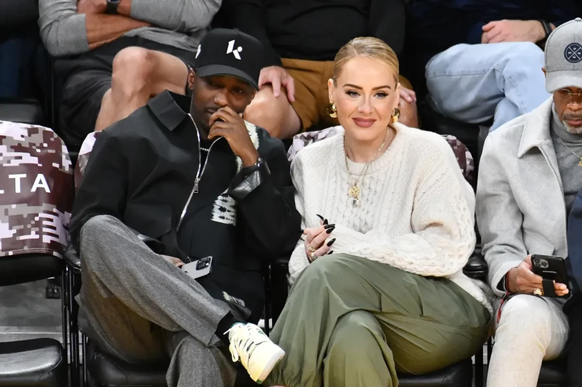During the game, Adele, 35, sported a cozy-chic look in a chunky white sweater and olive-green cargo pants, complemented by an array of gold jewelry. Paul, 41, dressed in a black jacket, gray trousers, and a coordinating baseball cap, sat beside her as they enjoyed the Lakers vs. Dallas Mavericks match.