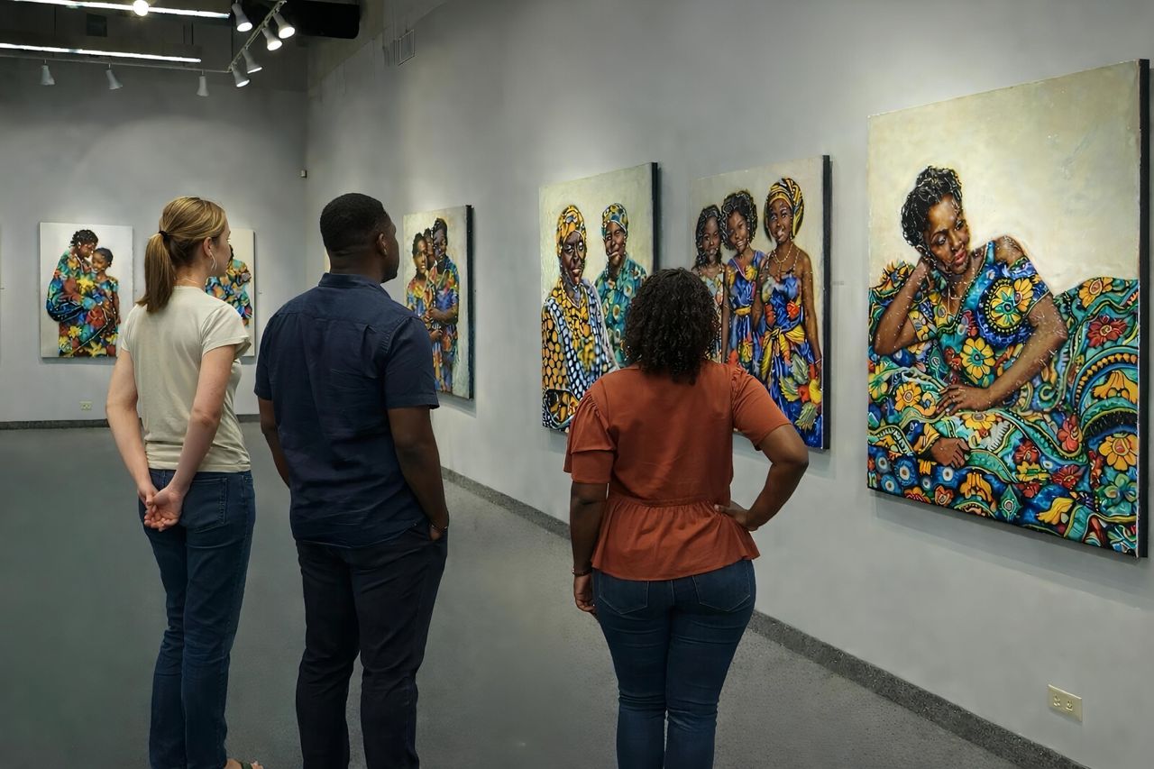 Ankara Stories, a solo exhibition by visual artist Goodluck Jane, has successfully concluded at the African American Atelier Gallery in the United States. The exhibition was on view from November 17–21, 2024, and welcomed audiences into an intimate visual conversation rooted in African memory, identity, and everyday life.