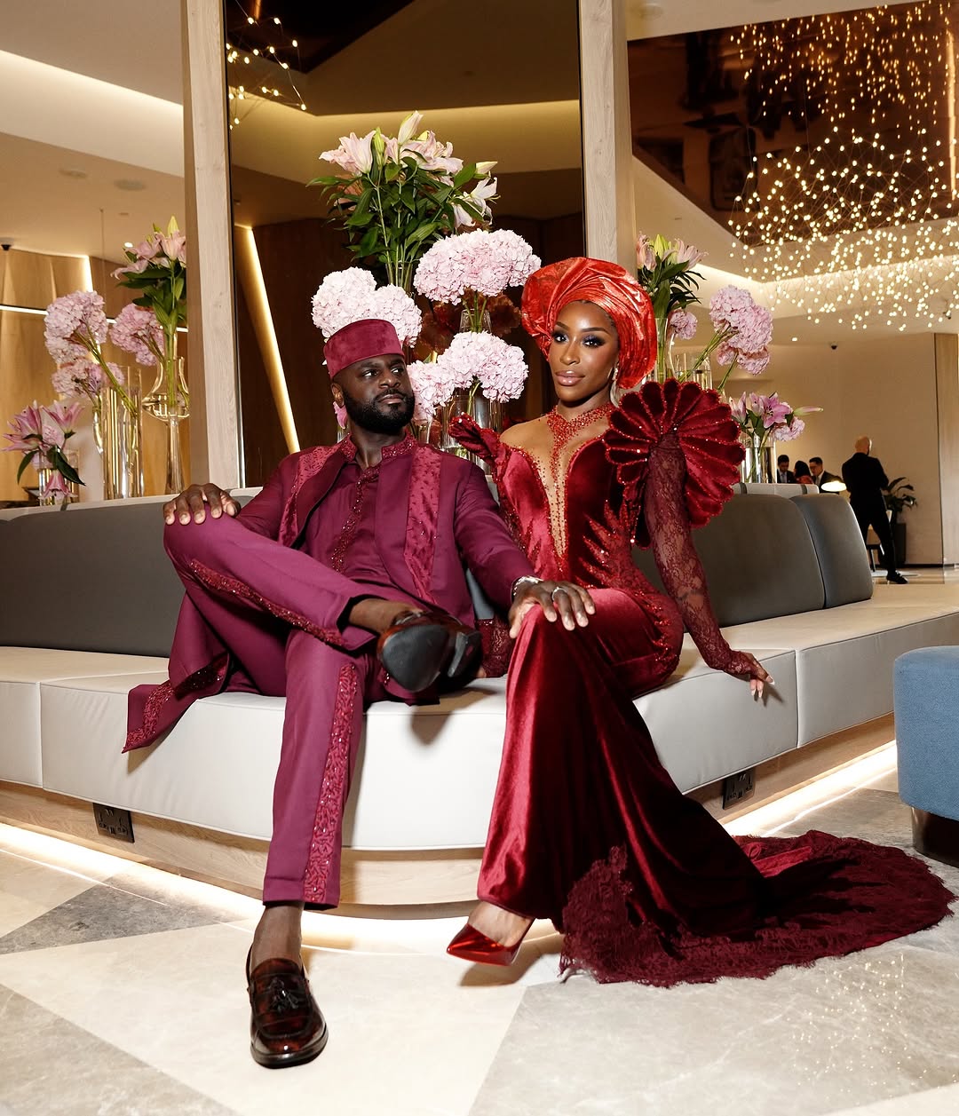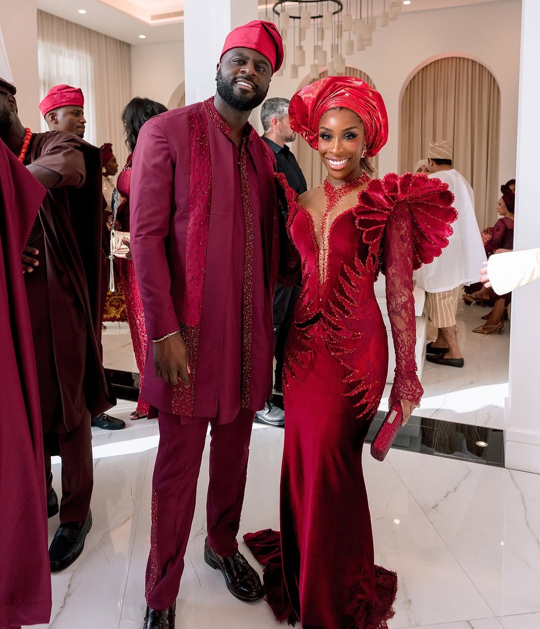 She didn’t pull off this moment solo, either. Husband Denis Asamoah coordinated in red, making the pair the picture of elegance as they joined the Ajibades’ epic three-part wedding journey across countries, cultures and couture.