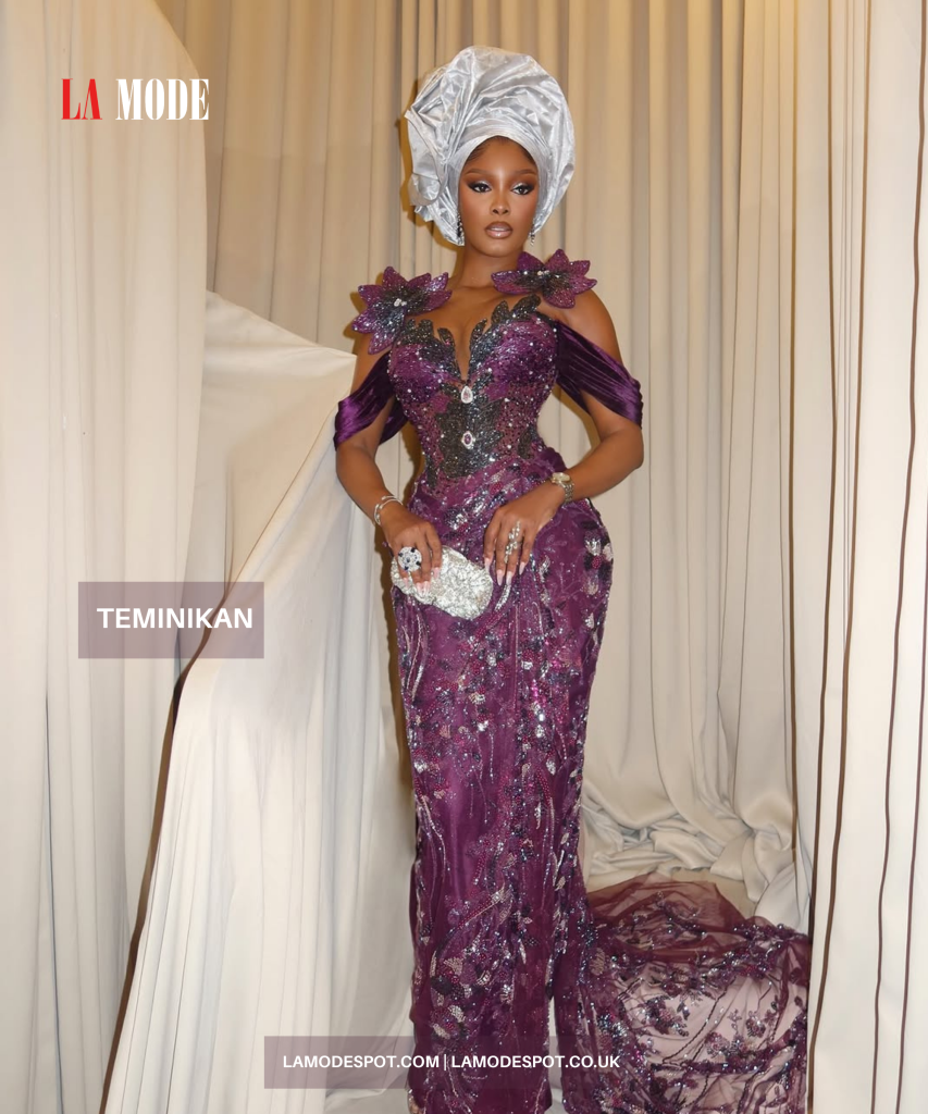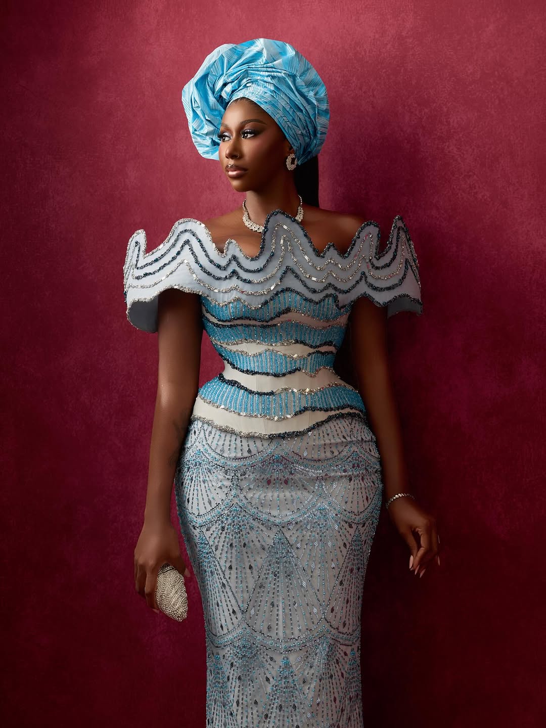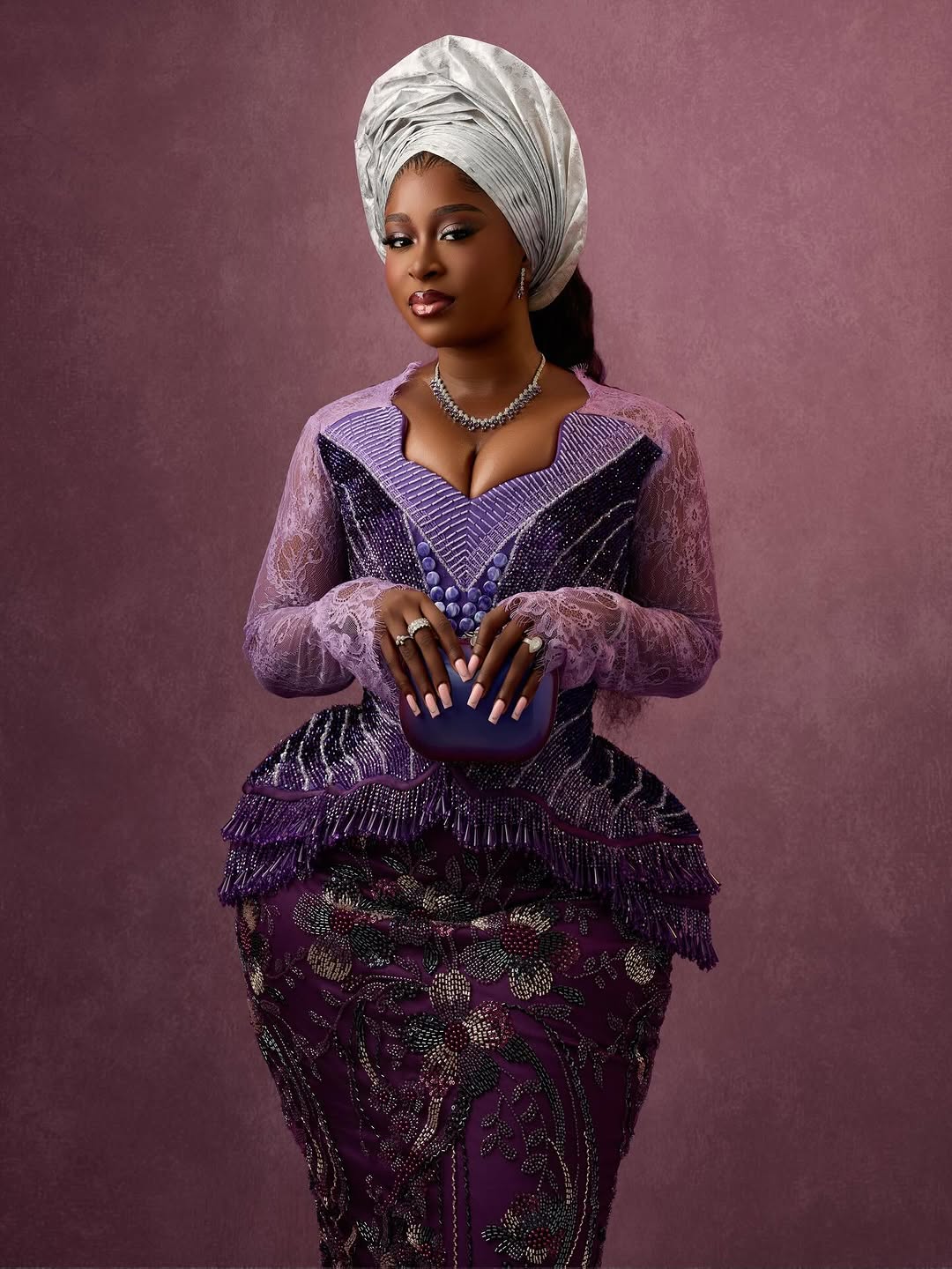 Dressed in striking royal purple and bright turquoise AsoEbi, the bridal party delivered a visual feast of colour, craftsmanship and intentional styling. From sculptural geles to intricate beadwork, every detail felt carefully curated for the occasion.