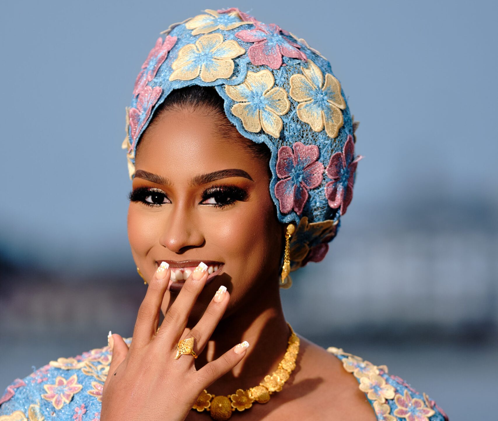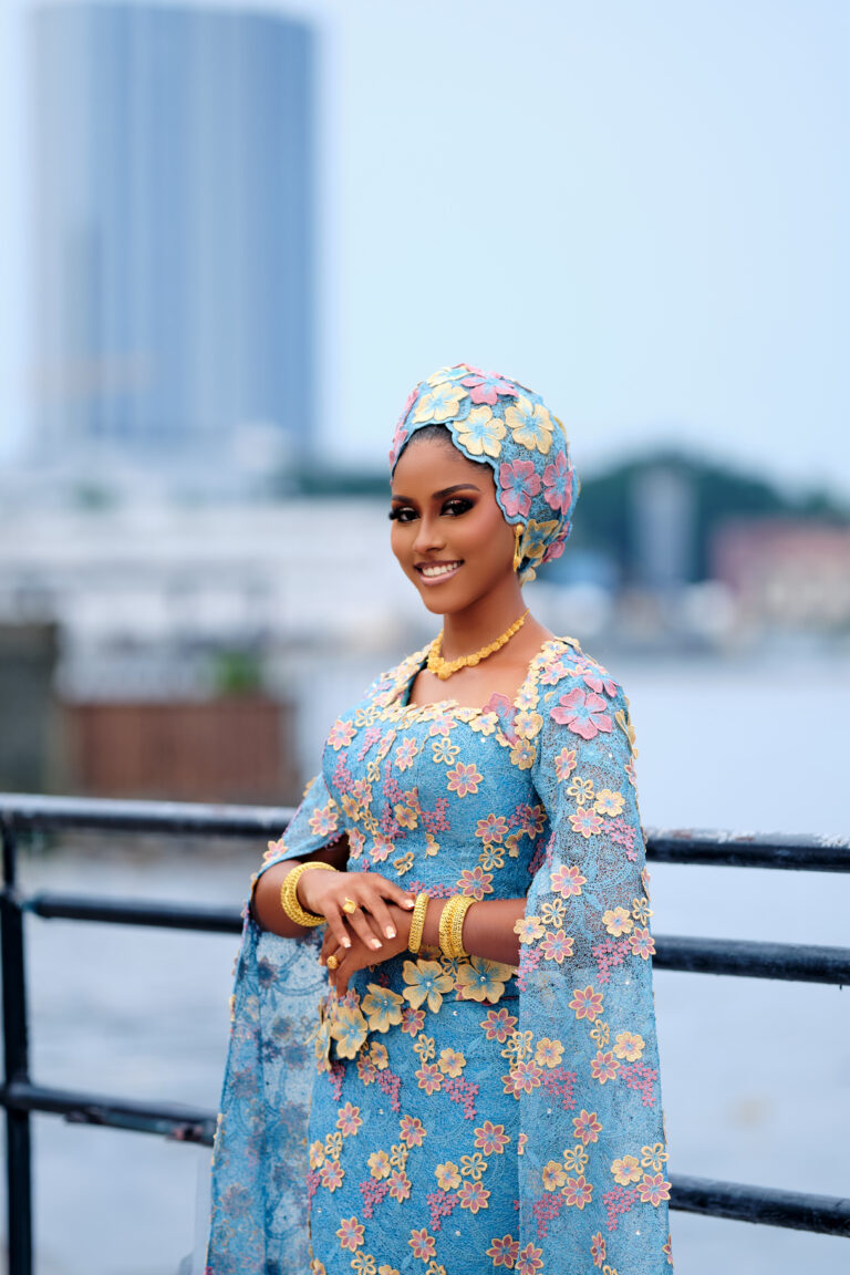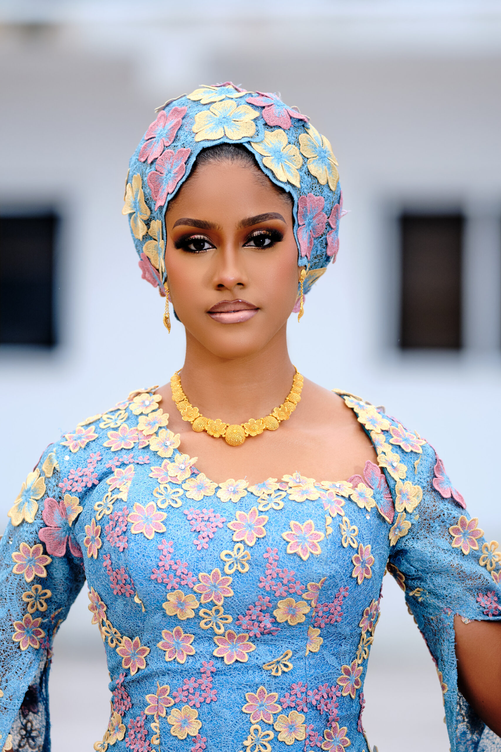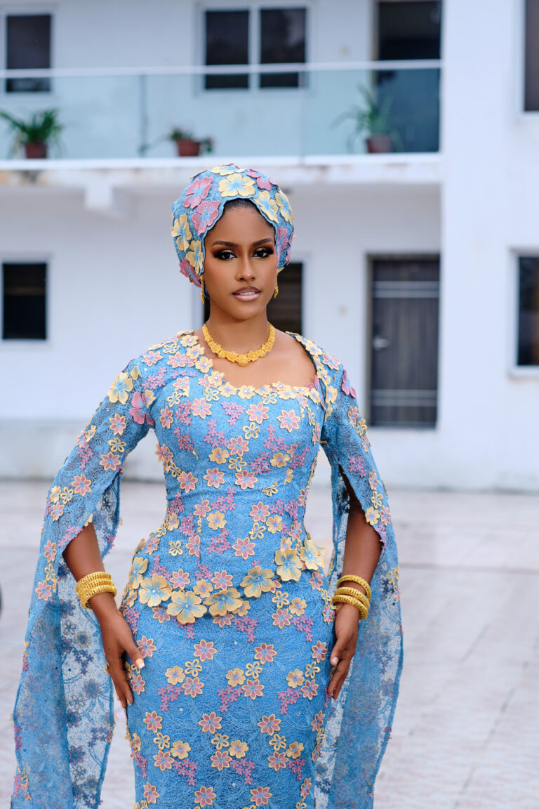 Then there’s the Adufe Gele moment: a floral turban that’s as regal as it is modern, tying the entire look together with quiet confidence. It’s the kind of headpiece that whispers bride, not trying to be bride.