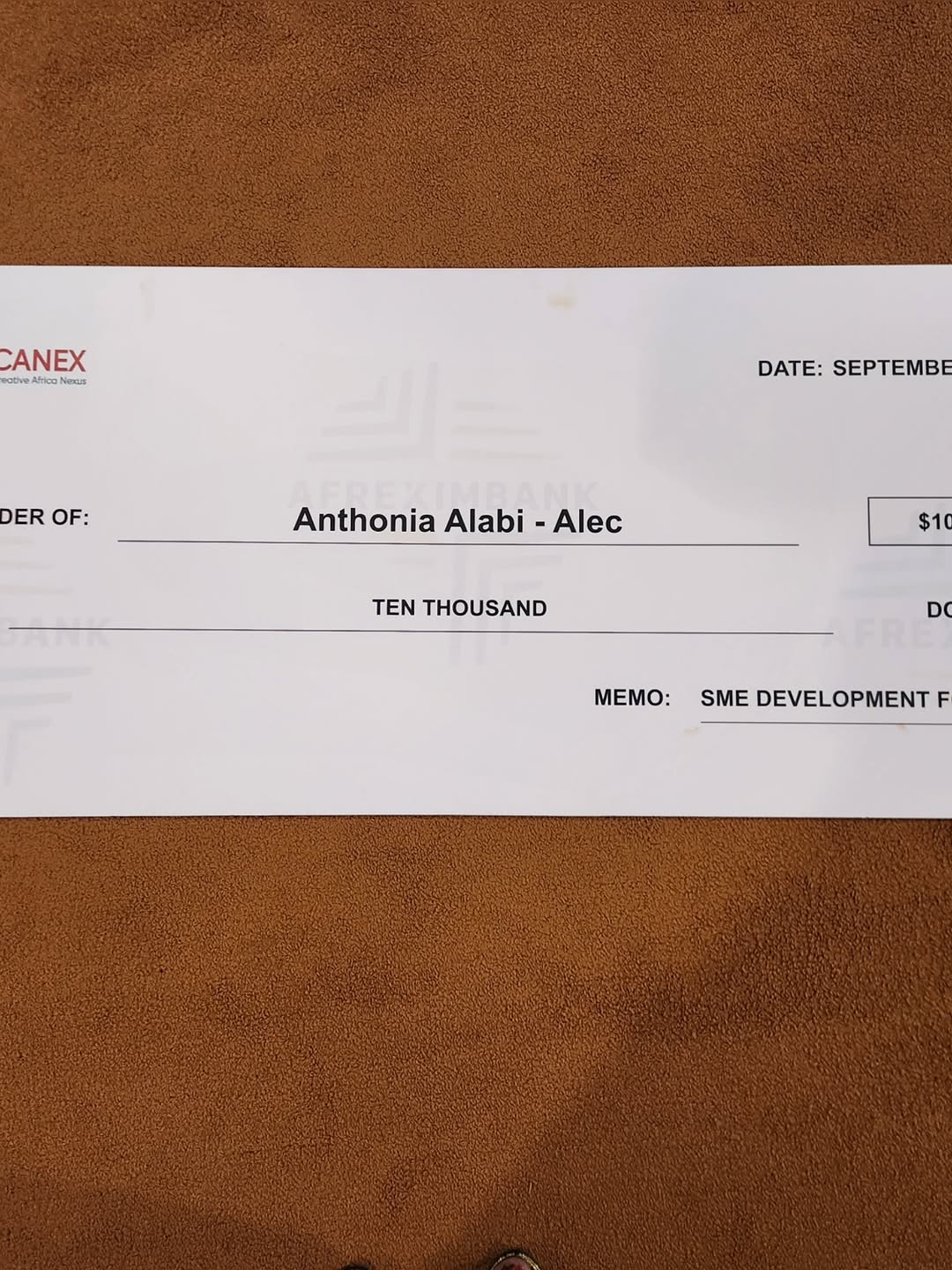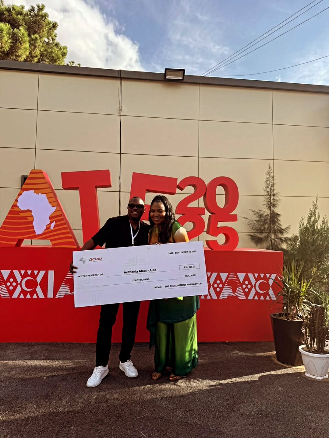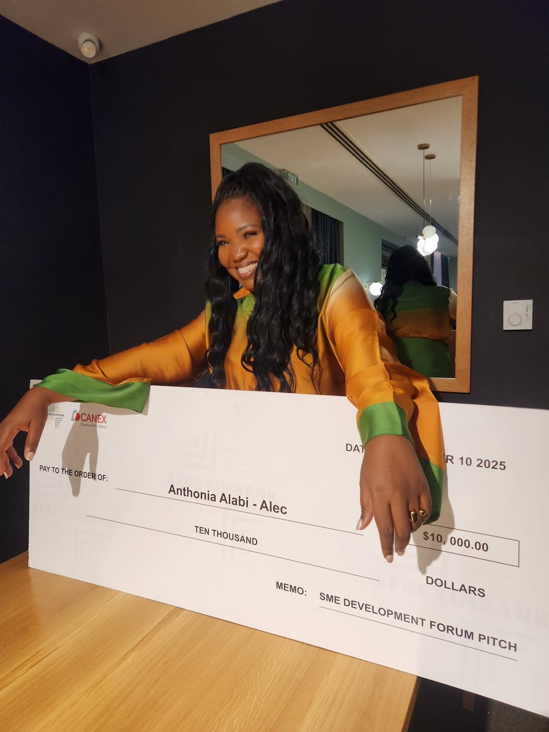 When she shared the news on Instagram, the images said it all: Sasha glowing in an emerald green outfit, holding a giant ceremonial cheque made out to her full name — Anthonia Alabi — with “SME Development Forum Pitch” proudly written in the memo line. It wasn’t just a prize photo-op; it felt like a receipt of validation.