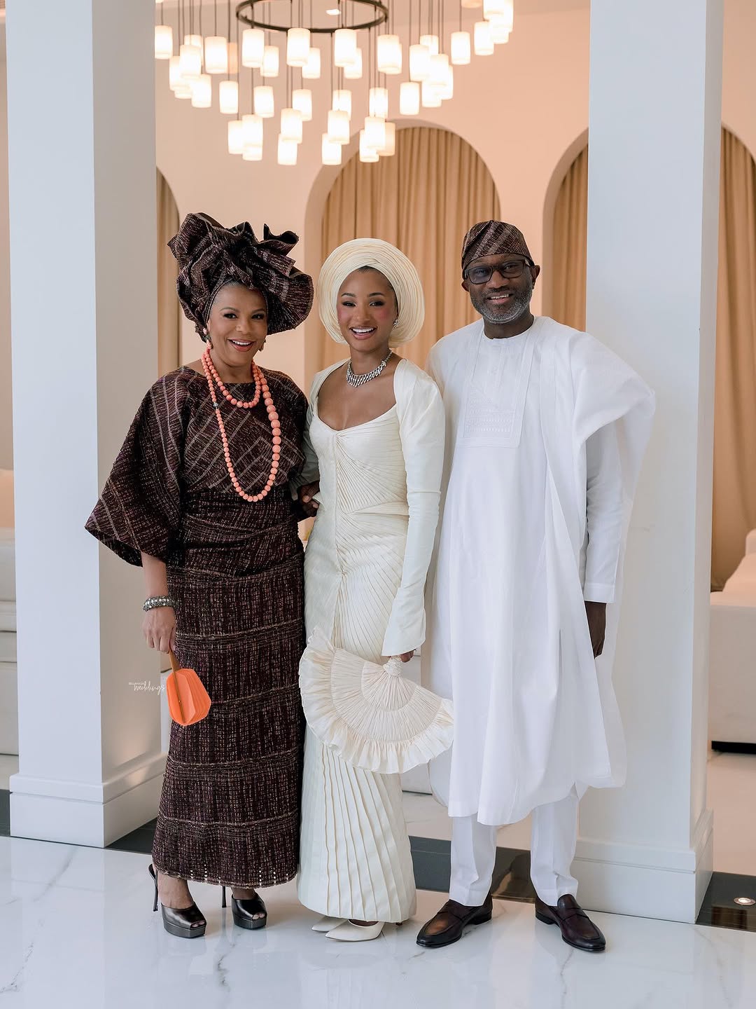 Two months after signing their papers, the couple gathered friends and family at the Otedola home in Dubai for a Yoruba wedding that redefined bridal style. Temi said she wanted her favourite designers to reimagine Nigerian attire through a couture lens — and the results? Breathtaking.