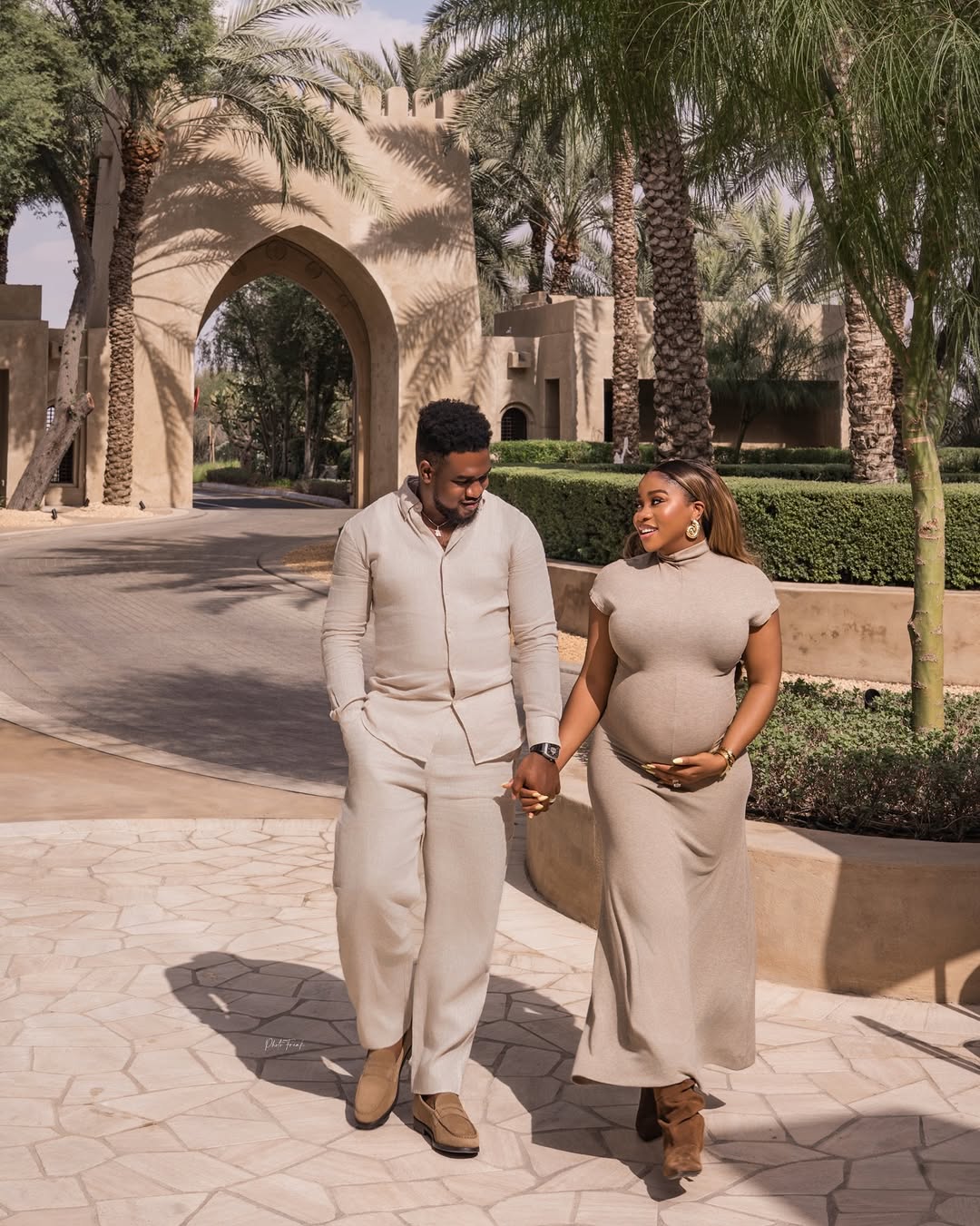 Fashion designer Veekee James and her husband Femi Atere have officially shared the joyful news: the couple is expecting a baby girl. The announcement came during an intimate gender reveal celebration held in Dubai, where elegance, restraint and thoughtful detail shaped the atmosphere of the moment.