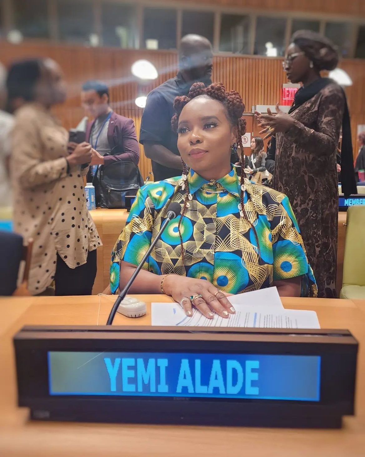 Yemi Alade pictured at the UN-EU Spotlight initiative Against Gender-Based Violence and the pivotal role of the Entertainment industry in impacting the global culture of violence against women and girls in the world.